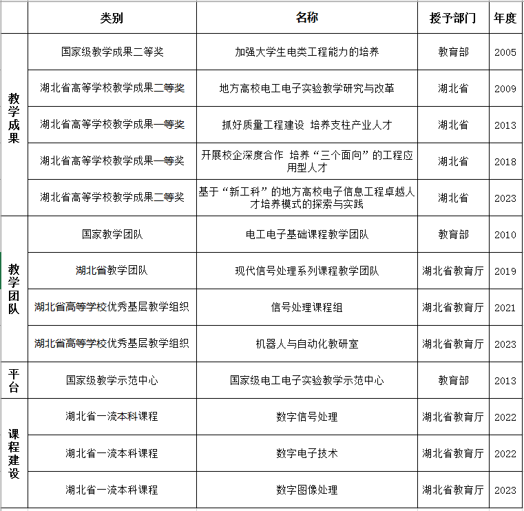近年来学院主要教学质量工程建设成果