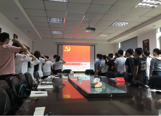 鲜红的党旗擎起一颗颗赤诚的心,醒目的誓词凝聚起不忘初心的信念与力量。活动伊始,黄龙同志带领全体党员举起右拳,在党旗下接受心灵的净化和洗礼,重温入党时的决心和理想。全体成员用饱满的热情、昂扬的斗志表达出作为共产党员的自豪感与使命感,抒发对党忠诚的意志和信念。