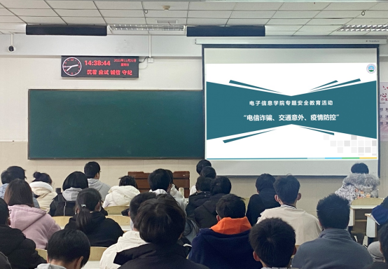 近日,电子信息学院组织开展“电信诈骗、交通意外与疫情防控”专题安全教育活动,全体本科生参加。本次安全教育活动通过班会形式开展,各年级辅导员参与并负责落实相关要求。