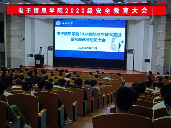 随后由王齐禄老师进行就业动员。王老师向2024届毕业生介绍了近几年学院的就业形势和今年学校的招聘情况。他说,近年来,电子信息和电气工程领域的就业形势呈现出较为乐观的趋势,对学院的学生来说是一大利好;同时,今年学校的招聘情况也相对较好,为毕业生提供了更多的就业机会。
