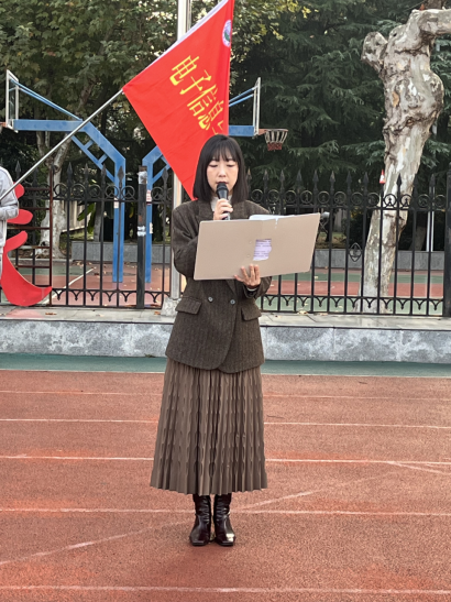 2022级学生代表刘雅欣进行国旗下讲话,她号召全体同学以学为基、以赛为辅、以干为练,不断增强自身综合实力,为建设高水平大学积蓄力量。