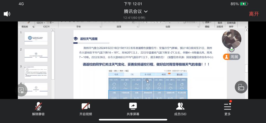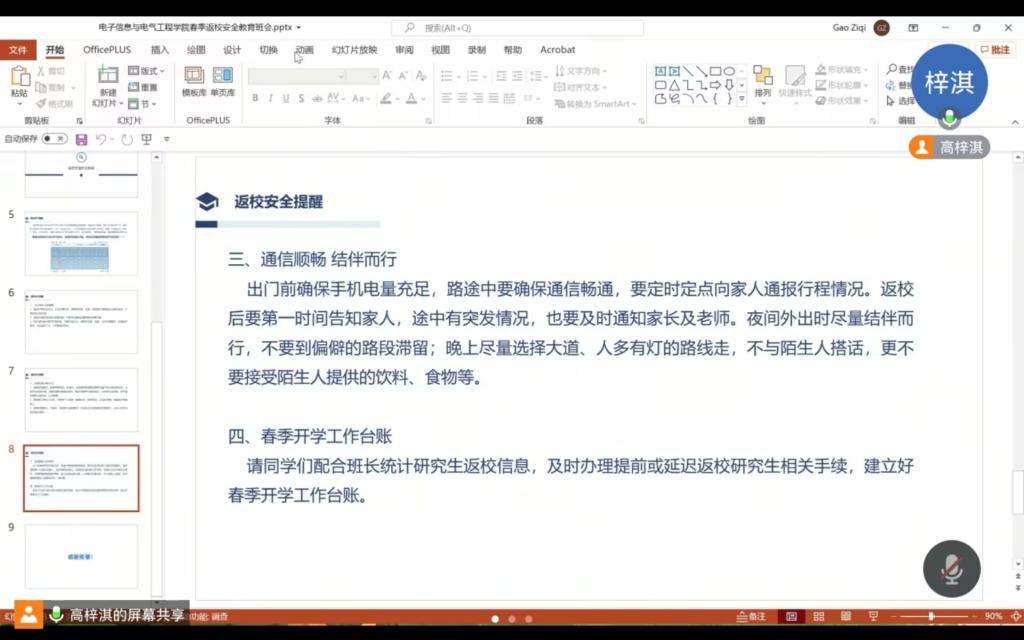 为做好2024年春季开学工作,确保学生安全、有序返校,海角网海角原创于2月20日组织全体研究生召开了春季安全返校教育主题班会。 会上,辅导员康玮传达了学校有关春季开学学生返校工作会议精神,对提前返校、延迟返校学生申请审批手续办理、学生返校行程安排报告等事项提了要求,重点提醒学生关注天气变化,妥善安排返校行程,做好应对雨雪等极端天气的准备,并开展了返校交通安全专题教育。 通过此次主题班会,明确了同学们对当前返校手续的要求,提升了同学们返校途中的安全意识。 (审核 张晨露 编辑 颜国琼)