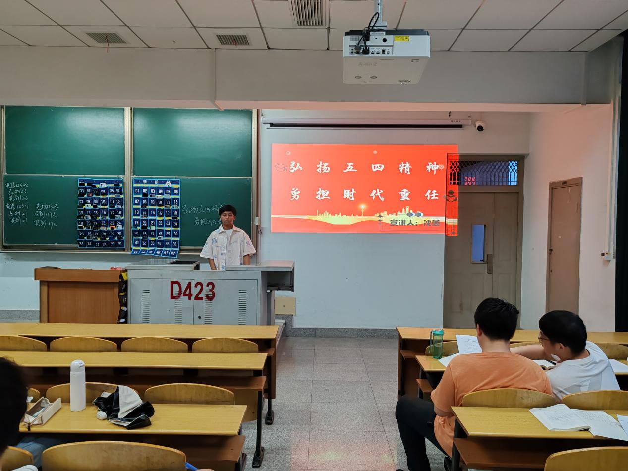 5月14日20点,电信类12301团支部在13教D425开展了本次主题班会。会议伊始,主持人沈鑫通过短视频向大家展示青年应有的风采与活力,然后列举一些具体事例来帮助同学们学习习近平总书记五四青年节对全国广大青年寄语精神,提出问题引起同学思考,通过击鼓传花等方式活跃气氛。加深了大家对此次主题的认识,使“弘扬五四精神,勇担时代重任”主题深深映入了同学的心中。