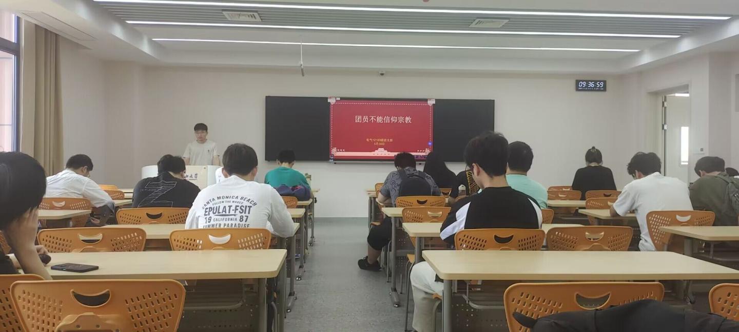 5月17日9时,电气12103团支部班团会在16教C404召开,首先是团支书夏自强同学引领大家深入开展了党纪学习教育,重点解读了《湖北省宗教事务条例》,并围绕“共青团员不应信仰宗教”的主题进行了学习。同学们还学习了《中国共产主义青年团章程》、《中国共产主义青年团团员教育管理工作条例(试行)》等核心文件和精神,增强了团员青年对党的宗教政策和相关法律法规的理解。