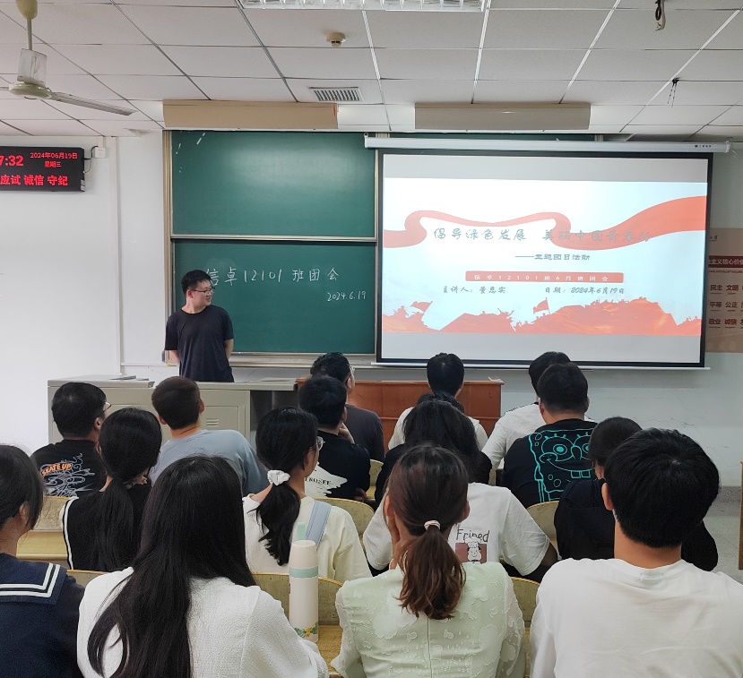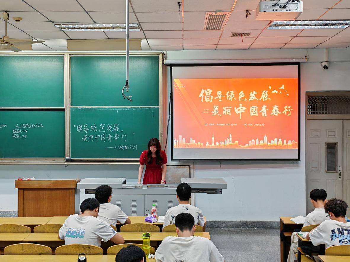 6月19日晚8点,人工智能12301团支部在13教D525教室举行六月班团会。汪一轩同学带领学生们学习了习近平总书记在同团中央新一届领导班子集体谈话时的重要讲话精神。随后,以就业引航主题团日活动的形式引助学生强化就业意识、初步明确就业发展方向,引导学生树立理性、平实的择业观、就业观,并主动到基层一线“自找苦吃”、踏实奋斗、成长成才。最后,组织成员参与“青年大学习”网上主题团课学习,认真学习党的二十大精神丰富内涵、团员和青年主题教育相关内容。至此,人工智能12301团支部班团会圆满结束。通过此次会议,学生们感受到绿色发展的重要性,引领广大青年在推动绿色发展、建设美丽中国的伟大事业中贡献青春力量。