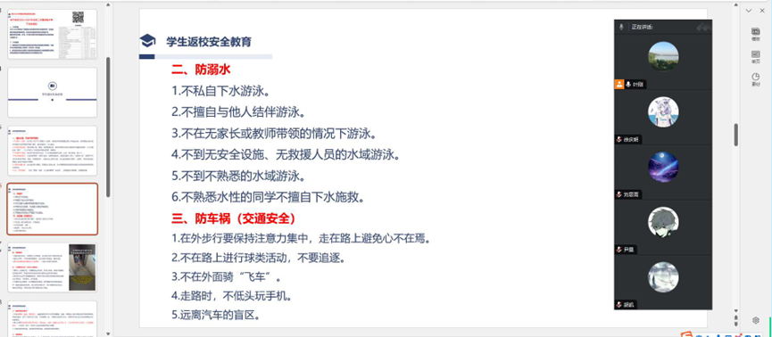 本次班会主要围绕以下四个方面开展:一是针对老生传达新学期教育教学事项,包括返校时间安排以及学费缴纳等;二是返校前安全教育;三是开展网络文明建设教育;四是针对2024级新生,讲解线上报到流程及注意事项等内容。