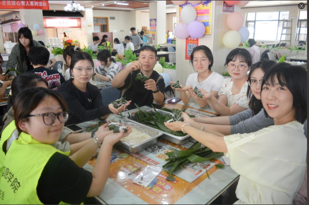 粽香传情,师生们品尝着自己亲手包制的粽子,开启了一场温馨的“成长茶话会”。大家围绕学业压力、职业规划、人际交往等话题畅所欲言。面对学业压力,有同学分享了自己的时间管理技巧和学习方法;在职业规划方面,学长学姐们结合自身经历,为学弟学妹们提供了宝贵的建议;谈及人际交往,大家纷纷讲述着自己在与同学、老师相处过程中的趣事和感悟,互相学习如何更好地沟通与理解。老师们也认真倾听同学们的心声,给予专业的指导和温暖的鼓励,现场气氛热烈而融洽。