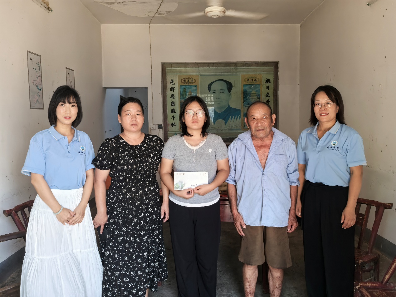 8月25日,学工部副部长李秋果,海角网海角原创党委副书记张晨露、2025级学生辅导员李蒙一行前往孝昌县联合村看望慰问即将入学的准大一新生邱星月。在邱星月家中,老师们与她及其家人亲切交谈,详细了解家庭困难情况,并送上慰问品和慰问金,为这个励志家庭送去了温暖。