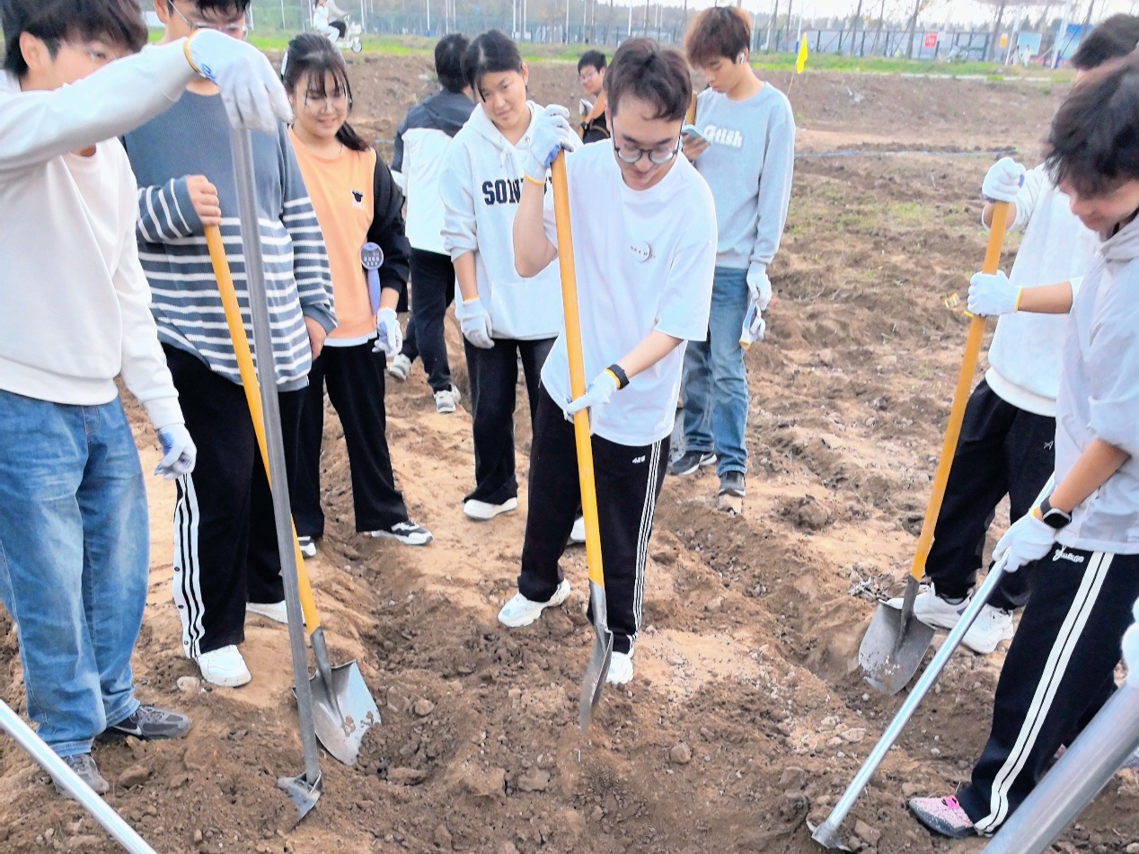“看着自己翻起的一排排畦垄,特别有成就感。”同学们都这样说。这门“田间必修课”让大家在实践中跳出书本,不仅锻炼了动手能力,更培养了团队协作意识和责任担当。后续同学们将在自己亲手平整的土地上种下小白菜、萝卜等作物,在出力流汗中收获劳动果实,厚植家国情怀,成长为“知行合一”的高素质复合型人才。