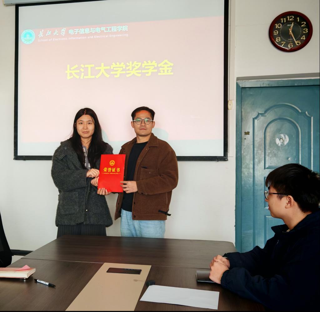 随后,颁奖环节正式开始,学院老师依次为获奖学生授予证书:涵盖国家奖学金、国家励志奖学金、长江大学奖学金等多个奖项类别,每一份荣誉都见证着学子们在学业与综合表现上的优异成绩。每一份鲜红的荣誉证书,都对应着学子们一学年里的勤勉与付出。获奖学生们手持证书与老师合影,脸上的笑容既带着收获的喜悦,也透着对未来的笃定。