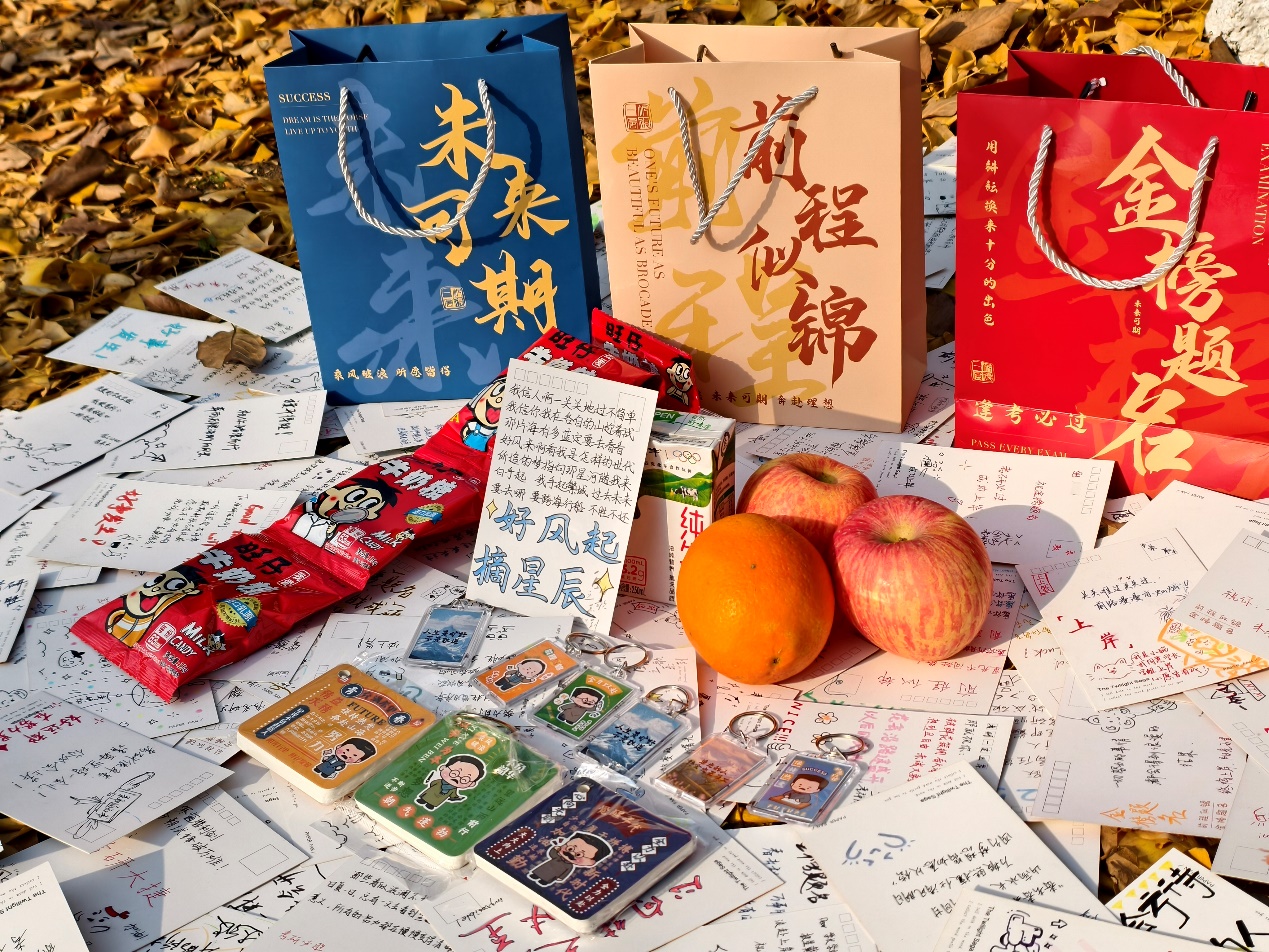 为给2026届考研学子加油鼓劲,学院低年级学生自发开展手写书信送祝福活动。大家执笔抒怀,将暖心鼓励、真诚祝愿落于笔尖,一封封书信承载着同窗情谊,为冲刺阶段的学长学姐注入温暖力量,让大家感受纸笺上的育人温度,让备考之路不再孤单。