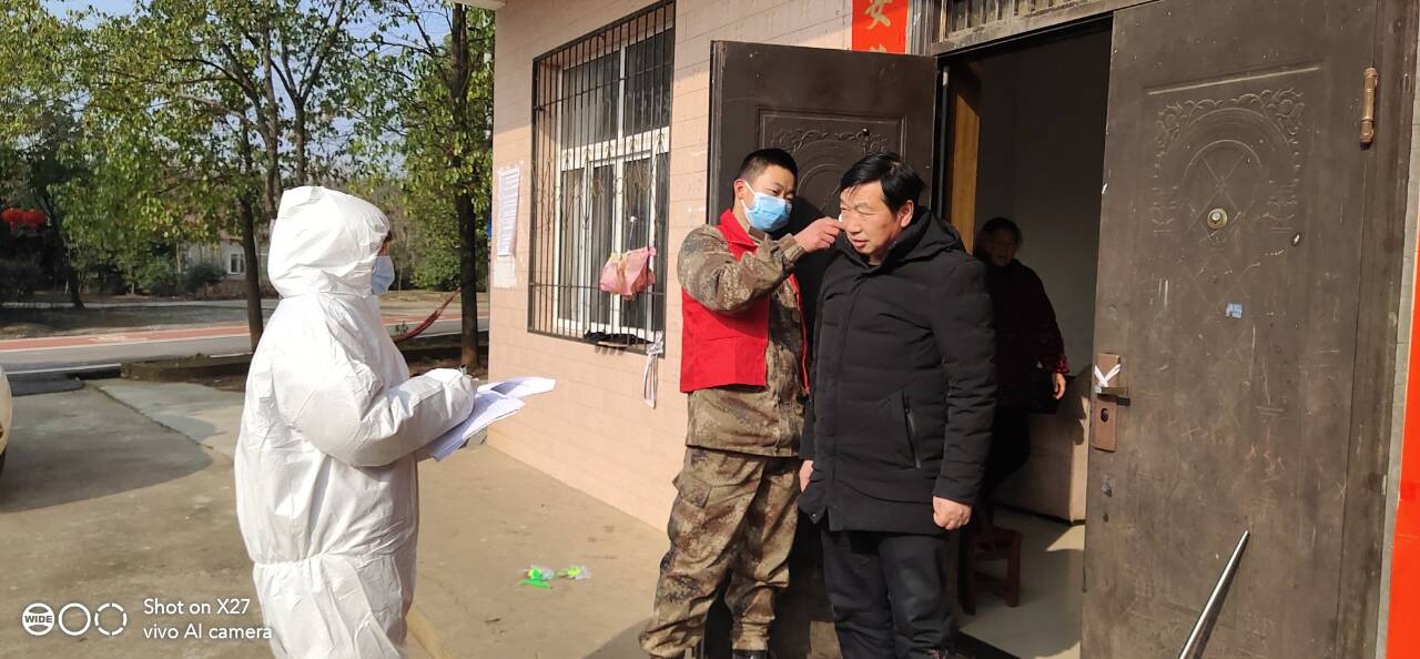 “时间就是生命,疫情就是命令”,放寒假后他回到了老家湖北省咸宁市咸安区汀泗桥镇黄荆塘村。因为武汉与咸宁紧紧相邻,他深知新型冠状病毒在地理环境上通过传播会对咸宁的影响,为了阻断病毒对该地区的传入和影响,更是为了响应省新型冠状病毒肺炎防控指挥部和长江大学新型冠状病毒肺炎指挥部的号召,保护全体村民的身体健康。作为一名光荣的退伍军人,他勇敢地承担起了黄荆塘村的防疫任务,志愿加入村委会的疫情防控组。对重点场所和全村居民家中进行消毒杀菌,每天给全体村民测量、登记体温,建立居民卫生档案卡片,向每家每户宣传、讲解新型冠状病毒感染的肺炎的知识,向村民讲解如何防控新型冠状病毒、如何做好自身的防护,以及遇到发热症状该如何进行应急处理等知识。