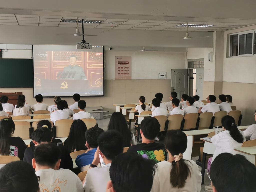 7月1日上午,电子信息学院全体学生党员在12教104观看庆祝中国共产党成立100周年大会,共同见证中国共产党成立100周年这一伟大的时刻。