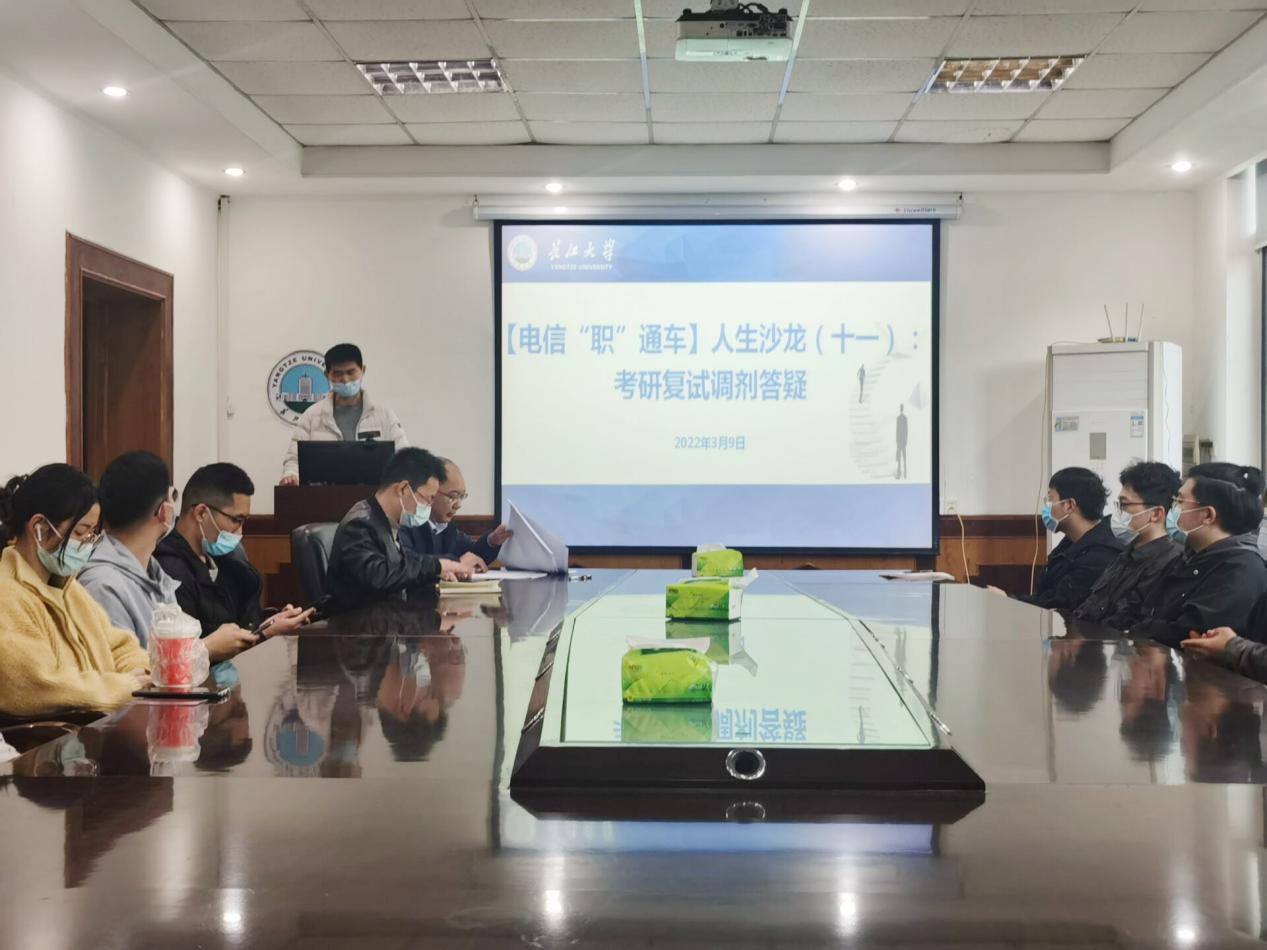 据悉,电信学院高度重视学生考研工作,本次会议助力学生考研梦,既为参加调剂、复试的学生答疑解惑,为学生们提供实质性的帮助与指导,又帮助学生做出正确的选择,为未来发展打下良好的基础,也为他们人生规划提供有益帮助。