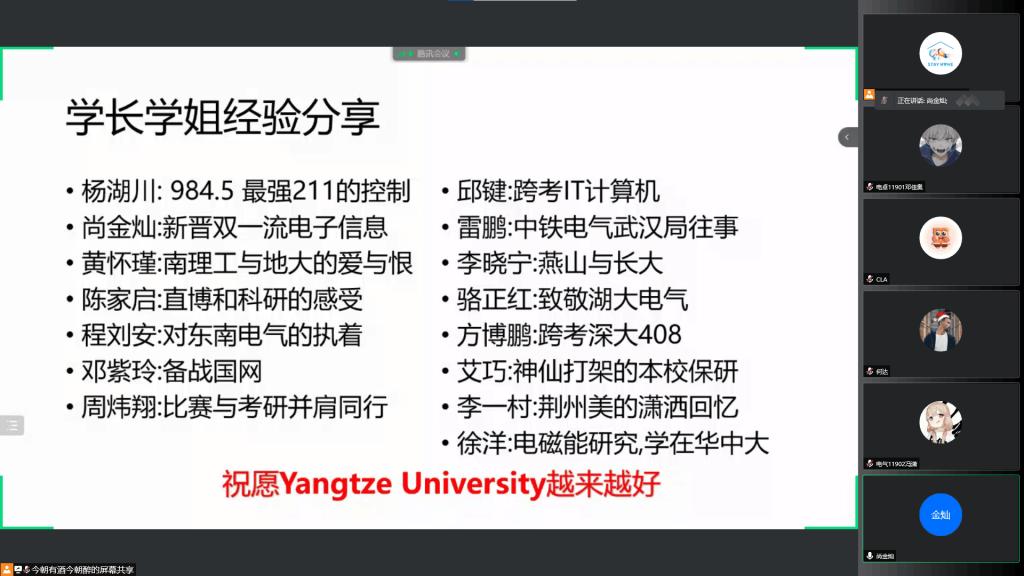 (通讯员 何达)努力拼搏,放飞考研梦想;激情飞扬,彰显青春魅力。为进一步加强同学们对研究生入学考试的认识,了解前沿的就业形势、增强考研斗志。4月23日晚,学院在线上举办了“电气及其自动化就业&考研分享交流会”。会议由2017级部分优秀毕业生主讲,2019级电气及自动化专业的同学们聆听本次会议。