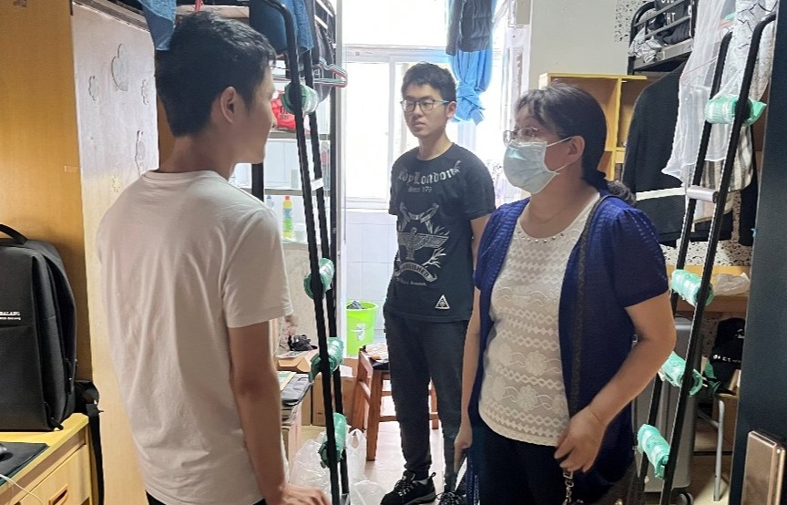 6月15日,电子信息学院党委书记刘逸、副书记郭启炜及辅导员王齐禄一同走访了毕业年级学生宿舍,为毕业生送上祝福。