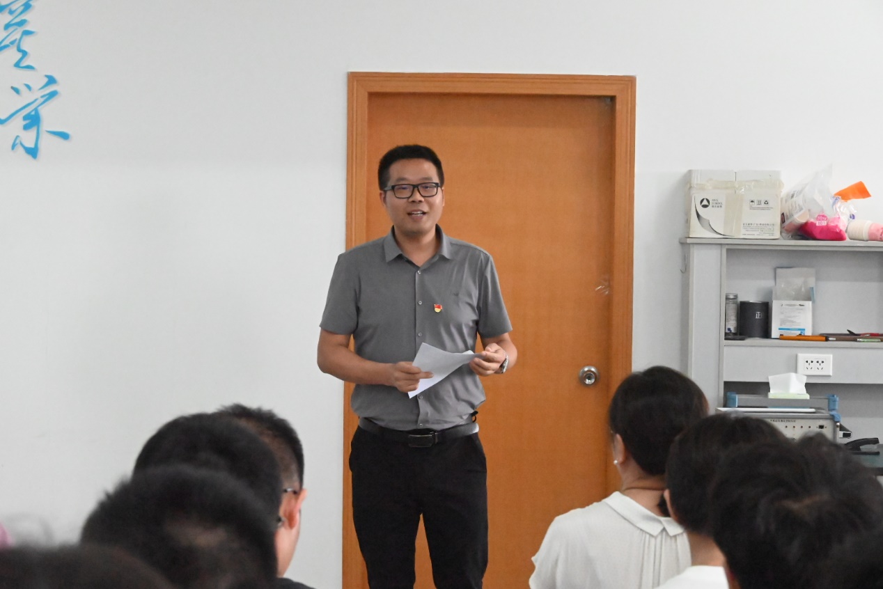 党支部书记周箩鱼同志进行表态发言。他就学校和学院对支部建设的关心和支持表示感谢,表示将以身作则,全力以赴抓好支部建设工作,强化科研育人氛围,进一步推动学院“一融双高”建设,以党建引领科研创新,助力学生成长成才,充分发挥党组织的战斗堡垒作用。