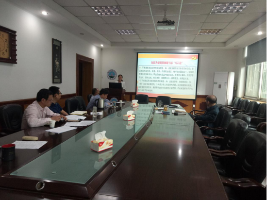 中心组成员在王红艳同志带领下,集中学习了习近平总书记在深入推动长江经济带发展座谈会上的讲话(要点)、长江大学第二十个党风廉政建设宣传教育月活动方案、关于党外代表人士参与学校民主管理和民主监督的实施办法、中共长江大学纪律检查委员会关于印发《长江大学党员领导干部“八不准”》等规定的通知等内容。