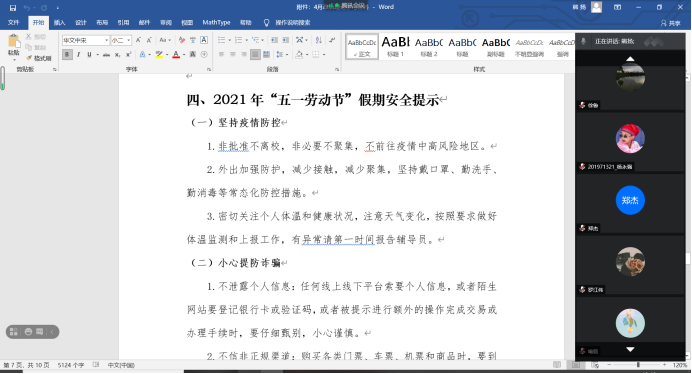 最后,学生会成员领读了“五一劳动节”假期安全须知,加强了研究生们对安全知识的学习。