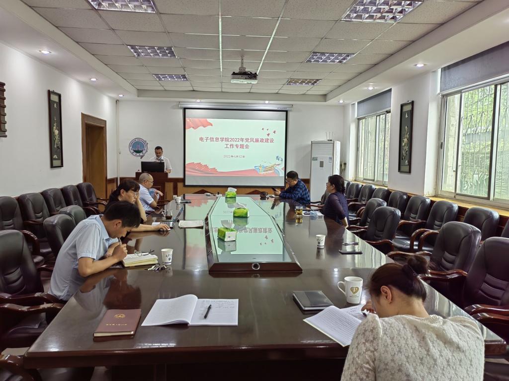2022年4月12日上午,电信学院领导班子在10教205会议室召开党风廉政建设和师德师风建设专题研讨会,会议由分党委书记刘逸主持,院长孙祥娥、副院长蔡昌新、陈永军、吴爱平和分党委副书记郭启炜参加会议。
