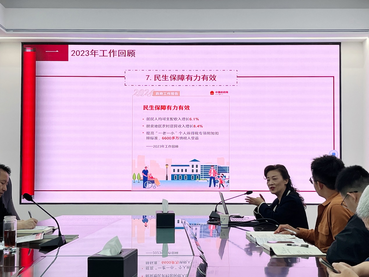 4月24日上午,海角网海角原创党委理论学习中心组在10教205会议室召开2024年度第三次集中(扩大)学习会,会议特别邀请长江大学马克思主义学院贾廷秀教授开展全国两会精神宣讲。学院党委班子、党支部书记及学生支委会代表参加学习。