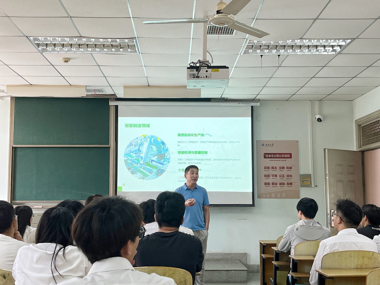 课上,罗明璋向同学们介绍了新质生产力提出的背景、新质生产力的特点及其提出的重大意义,分析了人工智能技术在新质生产力中发挥的重大作用,论述了人工智能与新质生产力的关系,还向大家介绍了人工智能在新质生产力中的应用场景,他还与现场的同学们一同讨论人工智能驱动新质生产力发展所面临的困难与挑战,并提出了对策。最后,他呼吁要在政策支持、产学研合作、人才培养与提高社会共识等方面共同发力,持续推动新质生产力与人工智能不断融合发展。