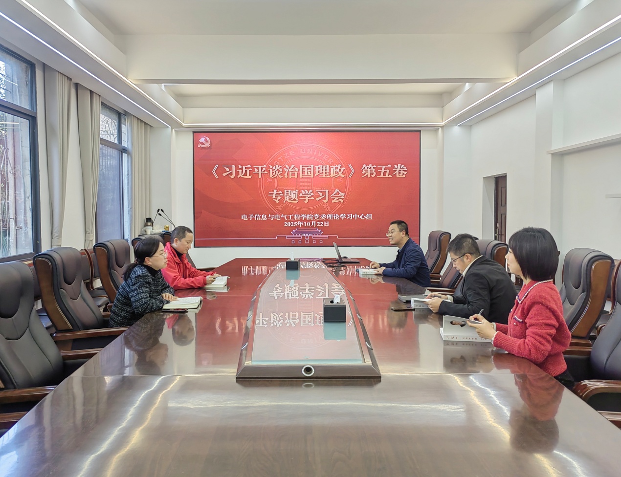 10月22日上午,海角网海角原创党委理论学习中心组在10教205会议室开展《习近平谈治国理政》第五卷专题学习,郭梅主持学习会。