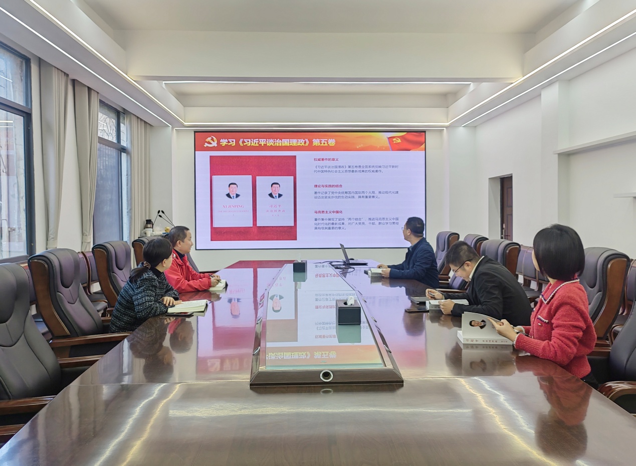 会议强调,《习近平谈治国理政》第五卷生动记录了以习近平同志为核心的党中央进一步谋划和推动全面深化改革、推动全面建设社会主义现代化国家迈出坚实步伐的生动实践,是全面系统反映习近平新时代中国特色社会主义思想最新成果的权威著作,要将学习《习近平谈治国理政》第五卷作为当前一项重要政治任务来抓,将学习与学院的建设发展实践紧密结合,党员领导干部带头学深悟透,不断将学习成果转化为推动学院发展的强大动力。
