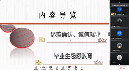 2020年6月13日,为确认学生联系方式等贷后管理工作,同时加强毕业年级学生的诚信就业教育,电子信息学院2020年还款确认、诚信就业主题教育班会以腾讯会议的形式在线上举行。电信学院2018级辅导员王齐禄老师、2016级辅导员艾林老师、2016级全体同学参加了此次主题班会。