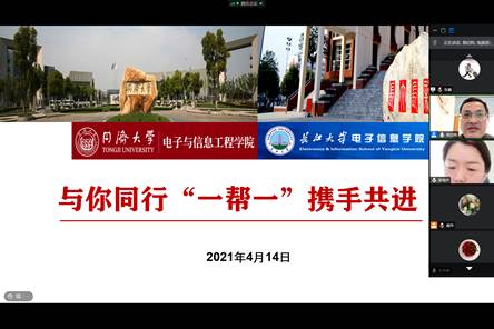 (通讯员 张鑫)同济大学就业帮扶行动一经启动,长江大学电子信息学院与同济大学电子与信息工程学院建立对口合作工作微信群,并于2021年4月14日9:30召开线上就业帮扶工作交流推进会,共同制定就业创业“一帮一”行动计划,两院分管学工的党委副书记、全体辅导员参加会议。