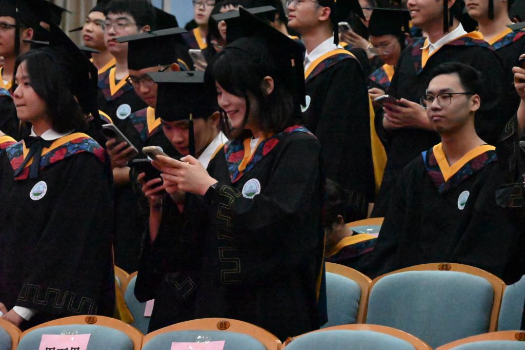 6月17日晚,学院在12教405报告厅隆重举行2024年学位授予仪式。党委常委、党委组织部部长、党委统战部部长李应军,院长罗明璋,副院长魏勇、蒋涛,党委副书记张晨露,以及导师代表张正炳教授、佘新平教授莅临现场,学院全体辅导员、毕业生家长代表参加典礼,240余名博士、硕士和本科毕业生代表齐聚一堂,在师长亲友的共同见证下,拨穗正冠,开启人生新篇章。