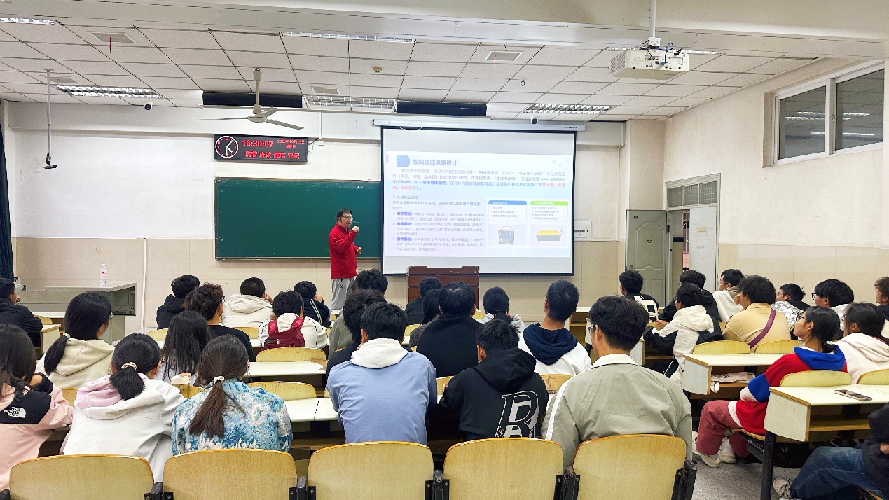 报告厅内,新生们目光炯炯,充满期待。魏老师从汹涌澎湃的“时代浪潮与专业使命”讲起,将人工智能、集成电路等前沿领域与国家战略需求紧密相连,点燃了同学们心中的责任与豪情。紧接着,他如数家珍般地介绍了学院的辉煌历史和雄厚的办学实力,一幅清晰的学院发展脉络图谱展现在大家眼前。
