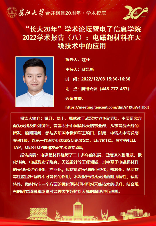 “长大20年”学术论坛暨电子信息学院2022学术报告(七)