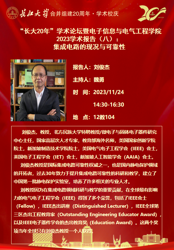 “长大20年”学术论坛暨海角网海角原创2023学术报告(八):集成电路的现况与可靠性